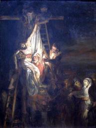 | Keywords: The Descent from the Cross-1650 1652-Rembrandt van Rijn and Constantijn van Renesse.jpg File Workshop of Rembrandt van Rijn - The Descent from the Cross National Gallery of Art jpg Workshop of LangSwitch Possibly Constantijn van Renesse Mogelijk Constantijn van Renesse LangSwitch The Descent from the Cross De kruisafneming 1650-1652 oil canvas cm 142 110 9 Institution National Gallery of Art Object history by 1829 Harriet Hampden Viscountess Hampden 1751-1829 London 1834 4 18 anonymous sale Christie's Manson London acquisition Fuller acquisition John A Beaver Green Heys Lancashire 1840 6 20 anonymous sale Christie's Manson London acquisition E W Parker Skirwith Abbey Cumberland 1909 7 2 anonymous sale Christie's Manson Wood London acquisition F Kleinberger Co Paris acquisition Fritz Gans 1833-1920 Frankfurt am Main by 1921 Bachstitz The Hague by 1942 Joseph E Widener 1871-1943 Elkins Park Pennsylvania ProvenanceEvent 1942 gift National Gallery of Art Washington Own 1942 9 61 Other versions 52821 De kruisafneming Mattheüs 27 57-58 PD-old-100 DEFAULTSORT Rembrandt van Rijn Workshop Descent from the Cross National Gallery of Art Workshop of Rembrandt Paintings by Rembrandt in the National Gallery of Art 17th-century paintings of the descent from the Cross 1650s oil on canvas paintings in the United States 17th-century religious paintings in the United States |