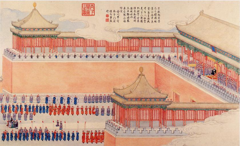 | Keywords: The Emperor is presented with prisoners at the Wumen (Middlegate).jpg en The Qianlong Emperor is presented with prisoners of the Jinchuan Campaign 1771-1776 zh-hans 平定两金 之午门受俘图 http //www battle-of-qurman com cn/e/hist htm late XVIII century A collaboration between Chinese and European painters The Jesuit missionaries involved in producing the drawings in China were Giuseppe Castiglione Jean-Denis Attiret Ignace Sichelbart and Jean Damascene The engravings were executed in Paris under the direction of Charles-Nicolas Cochin of the Académie Royal at the Court of Louis XVI and the individual engravers include Le Bas Aliamet Prevot Saint-Aubin Masquelier Choffard and Launay PD-Art Military of Qing China Ten Great Campaigns Paintings of the Qing Dynasty History of the Forbidden City Forbidden City in art Meridian Gate Forbidden City Prisoners in China |