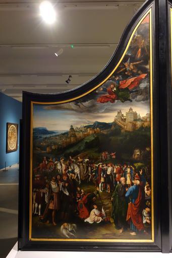 Keywords: The Fall of Simon Magus (left) and The Conversion of St. Paul (right), by Jan Rombouts, c. 1522-1530, view 2 - Museum M - Leuven, Belgium - DSC05040.jpg en Exhibit in the Museum M - Leuven Belgium This artwork is in the public domain because the artist died more than 70 years ago Photography was permitted in the museum without restriction 2013-10-12 07 09 21 own Daderot cc-zero The Conversion of St Paul and The Fall of Simon Magus by Jan Rombouts I Uploaded with UploadWizard
