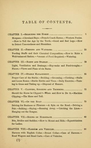 | Keywords: The family horse (Page 7) BHL21441878.jpg The family horse its stabling care and feeding A practical manual for horse-keepers / By Geo A Martin 21441878 69777 27296 Page 7 Table of Contents http //www biodiversitylibrary org/page/21441878 10 5962/bhl title 27296 Martin George A ; Martin George A NOT_IN_COPYRIGHT<br> Biodiversity Heritage Library Check categories 2015 November 6 PD-old-70-1923 The family horse Images uploaded by Fæ Files from the Biodiversity Heritage Library | ||||