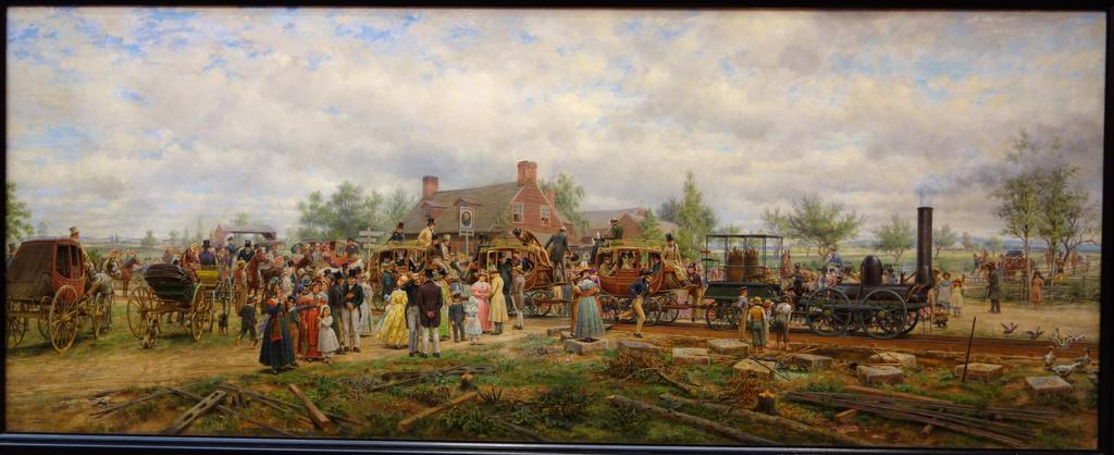 | Keywords: The First Railroad Train on the Mohawk and Hudson River, by Edward Lamson Henry, 1892-1893, oil on canvas, (official opening of Albany-Schenectady on Sep 24, 1831) - Albany Institute of History and Art - DSC08112.JPG  en Exhibit in the Albany Institute of History and Art Albany New York USA This artwork is in the public domain because the artist died more than 70 years ago Photography was permitted in the museum without restriction 2013-06-13 11 04 12 own Daderot cc-zero Paintings in the Albany Institute of History and Art Uploaded with UploadWizard Edward Lamson Henry Category 1893 oil on canvas paintings in the United States |