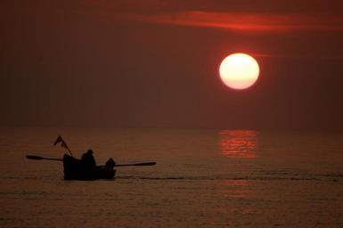 Keywords: the fisherman twilight sea west water boat