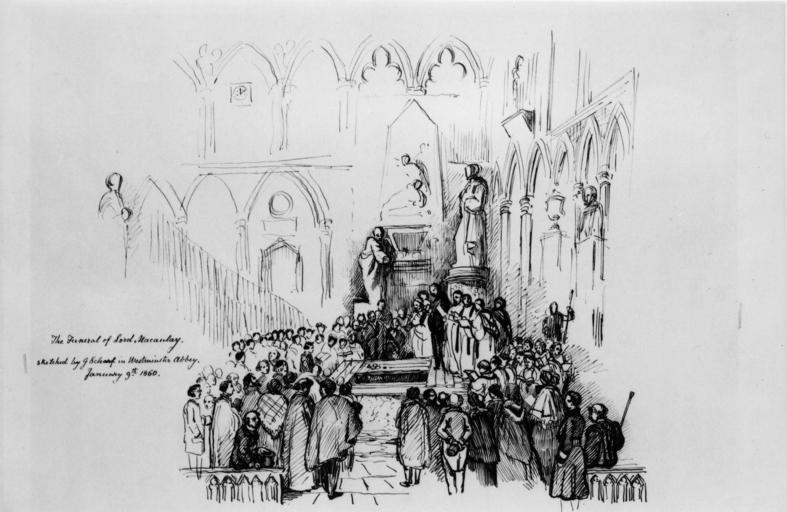 | Keywords: The Funeral of Thomas Babington Macaulay, Baron Macaulay by Sir George Scharf.jpg The Funeral of Thomas Babington Macaulay Baron Macaulay by Sir George Scharf died 1895 given to the National Portrait Gallery London in 1934 See source website for additional information This set of images was gathered by User Dcoetzee from the National Portrait Gallery London website using a special tool All images in this batch have been confirmed as author died before 1939 according to the official death date listed by the NPG 2689 date but author died in 1895 Creator George Scharf PD-old-100 National Portrait Gallery London Funerals in England George Scharf Thomas Babington Macaulay 1st Baron Macaulay |