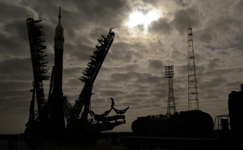 Keywords: gantry arms Soyuz TMA-12M spacecraft secure rocket launch pad Baikonur Cosmodrome Kazakhstan