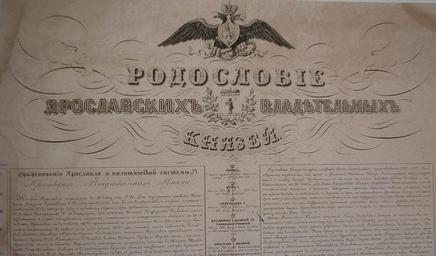 Keywords: The genealogy of Yaroslavl rulling princes.jpg en The genealogy of Yaroslavl ruling princes 1830s ru Родословие я ославских владетельных князей Г авю а укопись 1830-е Госуда ственный а хив Я ославской области Летопись Я ославля 1010 2010 С-Пб ИД « о ской Пете бу г» 2007 360 с; ил не известен s 1830 PD-old Cyrillic writing Princes of Yaroslavl |