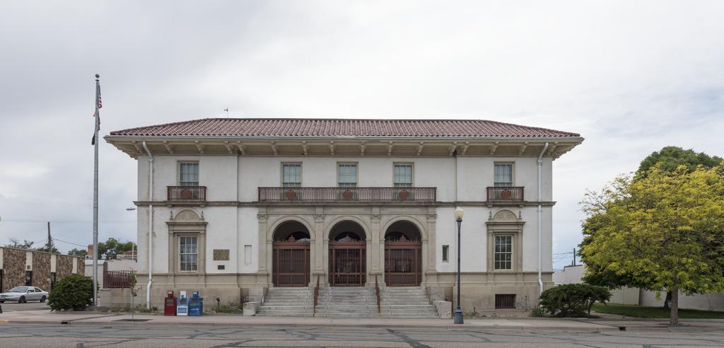 | Keywords: The grand facade of the La Junta Post Office is one of the architectural gems of La Junta, Colorado's downtown LCCN2015632533.tif 1 photograph digital tiff file color Notes Purchase; Carol M Highsmith Photography Inc ; 2015; DLC/PP-2015 068 ; Forms part of Gates Frontiers Fund Colorado Collection within the Carol M Highsmith Archive ; Credit line Gates Frontiers Fund Colorado Collection within the Carol M Highsmith Archive Library of Congress Prints and Photographs Division ; Title date and keywords based on information provided by the photographer ; Built by the U S Treasury under Supervising Architect Oscar Wenderoth in 1915 the post office opened a year later and quickly became the architectural focal point of the community Its defining features especially the low-pitch tile roof boxed eaves with decorative brackets arched windows and entry porch elaborate grille work and symmetrical smooth stucco facade are an expression of Spanish Colonial Revival and Italian Renaissance styles La Junta Spanish for the junction was established as a stop on the Santa Fe Railroad in 1875 2015 Creator Carol M Highsmith Library of Congress Catalog http //lccn loc gov/2015632533 Image download https //cdn loc gov/master/pnp/highsm/32500/32518a tif Original url http //hdl loc gov/loc pnp/highsm 32518 No known restrictions on publication LOC-image highsm 32518 PD-Highsmith Images uploaded by Fæ Gates Frontiers Fund Colorado Collection within the Carol M Highsmith Archive Post offices in Colorado La Junta Colorado Gates Frontiers Fund Colorado Collection within the Carol M Highsmith Archive Library of Congress Prints and Photographs Division Photographs by Carol M Highsmith |