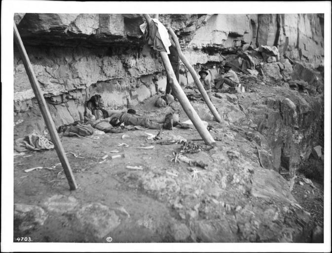 | Keywords: The Havasupai Indian Waluthama's cliff dwelling, ca.1899 (CHS-4703).jpg en <br> The Havasupai Indian Waluthama's cliff dwelling ca 1899 Photograph of the Havasupai Indian Waluthama's cliff dwelling ca 1899 Four men relax on the wide rocky ledge against the cliff wall Two or three rough hewn timbers are propped against the wall Sundry camping gear is strewn across the ledge Call number CHS-4703 Photographer James George Wharton Filename CHS-4703 Coverage date circa 1899 Part of collection California Historical Society Collection 1860-1960 Type images Part of subcollection Title Insurance and Trust and C C Pierce Photography Collection 1860-1960 Repository name USC Libraries Special Collections Format glass plate negatives Microfiche number 1-167- Archival file chs_Volume98/CHS-4703 tiff Repository address Doheny Memorial Library Los Angeles CA 90089-0189 Geographic subject country USA Format aacr2 2 photographs glass photonegative photoprint b w ; 17 x 22 cm Rights Digitally reproduced by the USC Digital Library; From the California Historical Society Collection at the University of Southern California Subject adlf tribal areas Project USC Accession number 4703 Repository email specol usc edu Identifying number plate no James-670 Contributing entity California Historical Society Date created circa 1899 Publisher of the digital version University of Southern California Libraries Format aat photographic prints; photographs Legacy record ID chs-m17017; USC-1-1-1-13517 Access conditions Send requests to address or e-mail given Phone 213 821-2366; fax 213 740-2343 Subject file heading Indians -- Havasupai Subject lcsh Indians of North America; Havasupai Indians Subject Havasupai Indians circa 1899 date created James George Wharton http //digitallibrary usc edu/cdm/ref/collection/p15799coll65/id/17032 PD-old-70-1923 Images from USC Digital Library uploaded by Fæ California Historical Society Collection 1860-1960 Glass plate negatives Havasupai Photographs by George Wharton James |