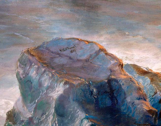 Keywords: The Icebergs detail, F. E. Church.jpg Artwork Creator Frederic Edwin Church Detail of Frederic Edwin Church's signature on his 1861 painting The Icebergs Signature is located on the lower left of the painting 1861 Oil on canvas detail Institution Dallas Museum of Art accession number 1979 28 object history credit line Dallas Museum of Art gift of Norma and Lamar Hunt on iceberg at bottom left F E Church 1861 http //dallasmuseumofart org 9090/emuseum/view/objects/asitem/1067/73/displayDate-asc t state flow 472844c1-bf74-46ef-b4cc-3b19326f9ed6 Dallas Museum of Arts collection <gallery>The Icebergs Frederic Edwin Church jpg <center>Painting</center></gallery> PD-art-100 The Icebergs by Frederic Edwin Church |