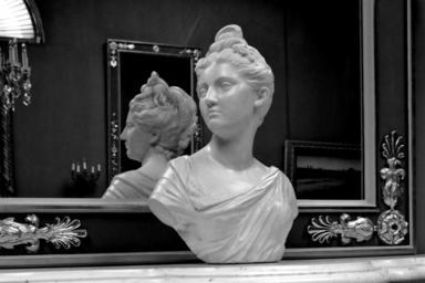 Keywords: The Lady with the Fibula by J-A Houdon Workshop Early 19th c.JPG Jean-Antoine Houdon асте ская Гудон Жан-Антуан Ж -А Гудона ru The Lady with a Fibula on Her Shoulder<ref name note1> en A w Fibula brooch fibula is not seen on this photograph it is located on the left shoulder of the lady and shifted towards the back w Фибула ru не видна на этой фотог афии она находится на левом плече дамы и смещена к спине </ref> LangSwitch early 19th century начало XIX века marble Moika Palace The Palace of the Yusupovs on the Moika River Saint Petersburg Дво ец Юсуповых на ойке ru Санкт-Пете бу г LangSwitch The Preziosa П ециоза object history credit line accession number Photo by Dmitry Ivanov See below Information field LangSwitch Notes П имечания <references/> LangSwitch See also См также Langswitch The bust The lady with the Fibula in the interior Бюст «Дама с фибулой» в инте ье е <gallery widths 180px heights 180px >File Fireplace in the Preziosa Moika Palace JPG LangSwitch The fireplace in the Preziosa Hall Камин в зале «П ециоза» </gallery> PD-old-auto self cc-by-sa-3 0 GFDL 1828 DEFAULTSORT Lady with Fibula Sculptures in the Yusupov Palace on Moika Jean-Antoine Houdon 19th-century busts of women 19th-century sculptures from France Busts in Saint Petersburg Marble busts Marble sculptures in Russia Mirrors in Russia Reflections in mirrors Black and white photographs in the 2010s Black and white photographs of Saint Petersburg Black and white photographs of sculptures Photographs taken on 2014-09-13 Moika Palace Files uploaded by Dmitry Ivanov Art