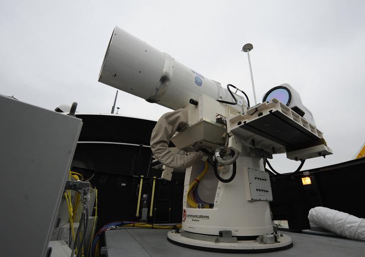 | Keywords: The Laser Weapon System (LaWS) is temporarily installed aboard USS Dewey. (8634864589).jpg SAN DIEGO July 30 2012 The Laser Weapon System LaWS temporarily installed aboard the guided-missile destroyer USS Dewey DDG 105 in San Diego Calif is a technology demonstrator built by the Naval Sea Systems Command from commercial fiber solid state lasers utilizing combination methods developed at the Naval Research Laboratory LaWS can be directed onto targets from the radar track obtained from a MK 15 Phalanx Close-In Weapon system or other targeting source The Office of Naval Research's Solid State Laser SSL portfolio includes LaWS development and upgrades providing a quick reaction capability for the fleet with an affordable SSL weapon prototype This capability provides Navy ships a method for Sailors to easily defeat small boat threats and aerial targets without using bullets U S Navy photo by John F Williams/Released 120730-N-PO203-280 Join the conversation http //www facebook com/USNavy www facebook com/USNavy http //www twitter com/USNavy www twitter com/USNavy http //navylive dodlive mil navylive dodlive mil https //www flickr com/photos/usnavy/8634864589/ The Laser Weapon System LaWS is temporarily installed aboard USS Dewey 2012-07-30 11 18 https //www flickr com/people/56594044 N06 Official U S Navy Page from United States of America PD-USNavy Official U S Navy Imagery https //flickr com/photos/56594044 N06/8634864589 2016-12-14 00 51 49 United States Government Work Naval ships of the United States Files from the U S Navy Flickr stream Files uploaded by Reguyla United States Navy |