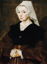 Keywords: The Master of the 1540s - Portrait of a young woman - Google Art Project.jpg Google Art Project Q20487982 creator Master of the 1540s 1541 technique oil oak panel cm 59 5 44 9 0 15th “19th c European art Gift of James Fairfax AC 1993 oil on panel James Oswald Fairfax AC Australia b 1933 1982-31 Aug 1993 Bowral/New South Wales/Australia Gift of James Fairfax 1993 Purchased by James Fairfax from Artneys International Ltd 1982<br />Artneys International Ltd 1982 by 1982 Sold to James Fairfax 1982<br />Cramer Netherlands 1976-1977 The Hague/Netherlands dealer<br />H Becker circa 1967 by 1967 listed in 'Sammlung Becker I gemälde alter meister / bearbeitung des kataloges' by Rolf Fritz Dortmund 1967 as collection of H Becker <br />Dr Hans Wetzlar Netherlands d 1977 Amsterdam/Netherlands after 1952 and by 1953 not listed in Max J Friedlander 'Collection Dr H Wetzlar' Amsterdam 1952 Lent to the exhibition 'Le portrait dans les Pays-Bas' Musée Communal Bruges 1953 Signature_ _Date Not signed Dated u r oil 1541 special url_id aQHkEMDmyGzrXQ PD-old-100 DEFAULTSORT Master of the 1540s Portrait female Art Gallery of New South Wales Master of the 1540s Art Gallery of New South Wales - European art Google Art Project works by Master of the 1540s 1540s portrait paintings 16th-century portrait paintings of women 16th-century women looking at viewer in art 1541 paintings Oil paintings of women Paintings in the Art Gallery of New South Wales Master Of The 1540s Paintings with years of production artist