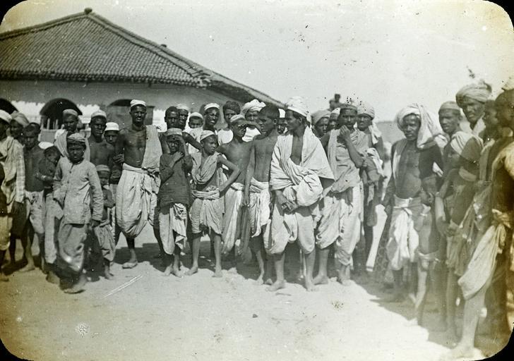 Keywords: The men wear traditional dress, with caps or turbans on their heads. (IMP-CSCNWW33-OS14-11).jpg en <br> The men wear traditional dress with caps or turbans on their heads Black and white lantern slide showing a crowd of Muslim men and boys at Henry Bazaar the oldest market place in Motihari Bihar India This slide comes from a collection created by missionaries from Regions Beyond Missionary Union an interdenominational Protestant evangelical mission working in northeast India Bihar and Orissa and Nepal Photographer Unknown Filename IMP-CSCNWW33-OS14-11 tif Coverage date 1900/1910 Subject unesco Markets; Trade; Men; Moslems Part of collection International Mission Photography Archive ca 1860-ca 1960 Part of subcollection Photographs from the Centre for the Study of World Christianity University of Edinburgh U K ca 1900-ca 1940s Repository name Centre for the Study of World Christianity Archival file Volume3/IMP-CSCNWW33-OS14-11 tif Geographic subject city or populated place Motihari Repository address The University of Edinburgh School of Divinity New College Mound Place Edinburgh EH1 2LX United Kingdom Geographic subject country India Format aacr2 lantern slides 8 2 x 8 2cm Geographic subject continent Asia Rights Contact the repository for details Part of series Regions Beyond Missionary Union India captioned lantern slides CSCNWW33/OS14 Repository email divinity-CSWC ed ac uk Date created 1900/1910 Publisher of the digital version University of Southern California Libraries Subject aat genre group portraits Format aat lantern slides; photographs Geographic subject state Bihar Access conditions http //www ed ac uk/schools-departments/divinity/research/centres/world-christianity/collections-resources Geographic subject commercial sites File CSCNWW33/OS14/11 Contributor Gardner Co Opticians Glasgow Subject lcsh Markets; Marketplaces; Men; Islam 1900/1910 date created author http //digitallibrary usc edu/cdm/ref/collection/p15799coll123/id/78235 PD-old-70-1923 Magic lantern images Images from USC Digital Library uploaded by Fæ International Mission Photography Archive ca 1860-ca 1960