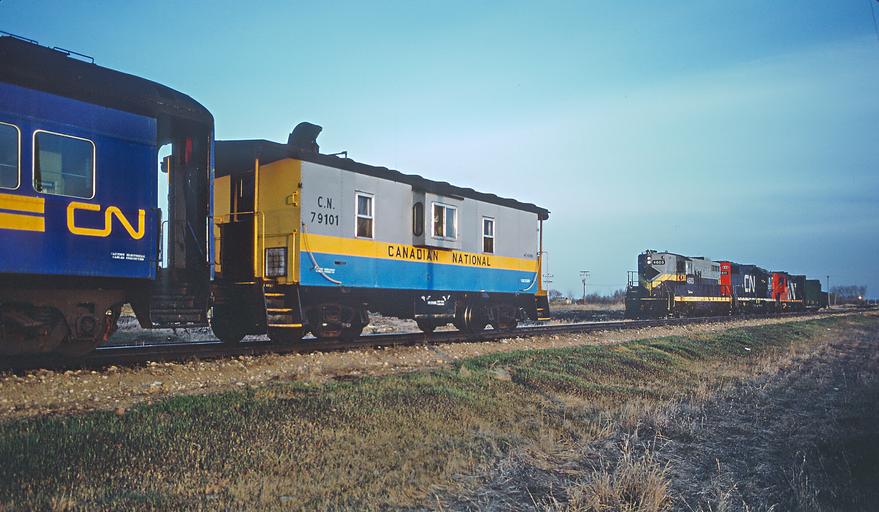 canadiannational The Muskeg Mixed Train in Alberta, May 1985 - 11 Photos (29865820975).jpg en When I asked the Canadian Railroads Group of Train Orders about these photos tsokolan responded Looks like Roger rode the Muskeg Mixed which IIRC was the last mixed train on the CNR Service was between Edmonton and Fort McMurray AB and ended in the early 1980s <br> <b>Roger Puta</b> took pictures of the train working at Lac La Biche Alberta and rode the train from there both in the cab and in the coach I'm pretty sure he rode to Edmonton <br> 1 and 2 CN 4603 CN 5517 and CN 4270 at Lac La Biche CN GP9 4603 GP9 was Northern Alberta Railway 202 and it is now a slug CN 252 <br> CN caboose 79101 ex Northern Alberta Railway at Lac La Biche 2016-09-22 19 17 48 https //www flickr com/people/129679309 N05 railfan 44 https //www flickr com/photos/129679309 N05/29865820975/ User Fæ/Flickr API Puta's CN and Roads Absorbed into the CN train railroad Interesting Train Cars NO ENGINES OR MOW Western Railroads American Rails Steel Rails Across North America North American Railroads Railroad Photographer USA/Canada Railroad Picture Hall of Fame Caboose's Railroad Sightings Canadian Railfans Canadian National Mel Finzer RogerPuta Photographs by Roger Puta Photos uploaded from Flickr by Fæ using a script Cabooses of Canada 1985 in Alberta 1985 in rail transport in Canada |