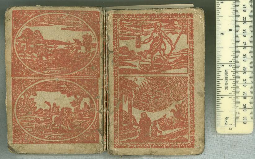 Keywords: The Picture Exhibition- containing the original drawings of eighteen disciples. To which are added moral and historical explanations, published under the inspection of Master Peter Paul Rube - Upper and lower cover (C40a73).jpg Style Pictorial All over design; Caption Upper and lower cover; Colour White / cream Red; Edge Plain exhibition history Decorative Technique Blocked in red; Cover Material Paper blocked Binding extremely fragile object history Text 1783; London; Unspecified object type Cc-zero place of creation Binding England place of discovery Unspecified British Library image http //www bl uk/catalogues/bookbindings/LargeImage aspx RecordId 020-000018297 ImageId ImageId 57019 Copyright BL The Picture Exhibition containing the original drawings of eighteen disciples To which are added moral and historical explanations published under the inspection of Master Peter Paul Rubens professer sic of polite arts 77 p ; 12ยบ London T Carnan 1783 Uploaded with GWToolset The Picture Exhibition containing the original drawings of eighteen disciples To which are added moral and historical explanations published under the inspection of Master Peter Paul Rube - Upper and lower cover C40a73 http //www webarchive org uk/bldatasets/bindings/c40a73 jpg Bookbinding 18th-century bookbinding British Library Bookbindings |
