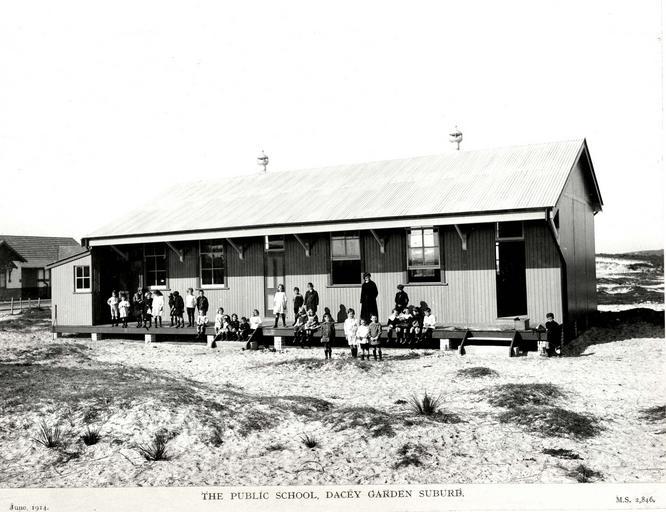 | Keywords: srnsw:series=5225 outdoor building architecture Title: The public school, Dacey Garden suburb Dated: month and year only 01/06/1914 Digital ID: 5225_a018_a018000033 Rights: www.records.nsw.gov.au/about-us/rights-and-permissions We'd love to hear from you if you use our photos/documents. From a series of photographs of 'Dacey Garden Suburb' (Daceyville) - a development by the Housing Board of NSW as Sydney's "first planned modern garden suburb". Daceyville was developed between 1913 and 1918 and is located in south-eastern Sydney within the municipalities of Mascot and Botany. The images in the series show scenes of the area before development, road building, the types of houses built, shops, as well as the Public School. The suburb was named after the state parliamentarian John Rowland Dacey who played a vital role in the approval of this urban development. Many other photos in our collection are available to view and browse on our website using Photo Investigator. Title: The public school, Dacey Garden suburb Dated: month and year only 01/06/1914 Digital ID: 5225_a018_a018000033 Rights: www.records.nsw.gov.au/about-us/rights-and-permissions We'd love to hear from you if you use our photos/documents. From a series of photographs of 'Dacey Garden Suburb' (Daceyville) - a development by the Housing Board of NSW as Sydney's "first planned modern garden suburb". Daceyville was developed between 1913 and 1918 and is located in south-eastern Sydney within the municipalities of Mascot and Botany. The images in the series show scenes of the area before development, road building, the types of houses built, shops, as well as the Public School. The suburb was named after the state parliamentarian John Rowland Dacey who played a vital role in the approval of this urban development. Many other photos in our collection are available to view and browse on our website using Photo Investigator. |