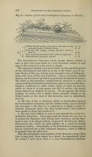 | Keywords: The Quarterly journal of the Geological Society of London (13071081065).jpg 478 PROCEEDINGS OF THE GEOLOGICAL SOCIETY <br> Fig 2 Section of Lias and Carhoniferovs Limestone at Whatley <br> J Drifted deposit partly composed of a ferruginous clay ft in <br> 1_ enclosing blocks of Inferior Oolite 4 <br> 7 r Grey clay with Argiope Suessia Spirifera Pentacri- <br> B 1 nites c 10 <br> a Grrey laminated micaceous marl without organisms 12 <br> C Carboniferous Limestone exposed 3 <br> The Carboniferous Limestone which though almost vertical is <br> seen to have been worn down to a very horizontal surface is only <br> open in this section for a few yards in length <br> The uppermost deposit c is much hidden by the vegetable growth <br> of the embankment and must be as late as the Oolite since it con- <br> tains blocks of that age having many imperfect casts of Echinoder- <br> mata with Lima gibhosa and Litliodomi This is evidently a drifted <br> deposit and has mixed up with it many blocks of sulphate of barytes <br> The Oolite in this immediate neighbourhood whenever it comes in <br> contact with the Carboniferous Limestone puts on very peculiar mine- <br> ralogical conditions its under sui face being at times an iron-ore <br> whilst at others it is very porous and full of canities the matrix <br> being composed of sulphate of barytes On the opposite side of the <br> roadway an oolitic rock is visible which probably belongs to the <br> Fuller's earth as the clays of this formation come in immediately <br> above it <br> B The Lias 2 feet in thickness which is intermediate between <br> the Carboniferous Limestone and the Inferior Oolite may be divided <br> into two parts the first a is composed of a bluish or grey la- <br> minated micaceous marl ; but after careful search I have hitherto <br> been unable to detect any fossils in it <br> 6 The bed which follows is seen to rest immediately on the Car- <br> boniferous Limestone In its upper part the fossils are rare but as <br> it reaches the limestone they become more abundant and the base- <br> ment is seen to be almost entirely composed of Brachiopoda Echini <br> Pentacrinites fee which are held together by a somewhat friable <br> calcareous matrix Occasionally on the Carboniferous Limestone its <br> base is converted into a thin indurated limestone which is difficult <br> to separate from the older rock <br> That this remarkable representative of the Fontaine-etoupe-Four <br> Lias is very local there cannot be a doubt ; for immediately below <br> the section I have given there is a large Carboniferous-limestone 36345233 112028 51125 Page 478 Text v 23 http //www biodiversitylibrary org/page/36345233 1867 Geological Society of London NameFound Argiope NameConfirmed Argiope EOLID 10723888 NameBankID 4937153 NameFound Brachiopoda NameConfirmed Brachiopoda EOLID 1498 NameBankID 230460 NameFound Echini NameConfirmed Echini NameFound Lima gibhosa NameConfirmed Lima gibbosa Hudleston NameFound Pentacrinites NameConfirmed Pentacrinites EOLID 4706235 NameBankID 4287798 NameFound Spirifera NameConfirmed Spirifera NameBankID 4349332 NameFound Suessia NameConfirmed Suessia NameBankID 3402077 Biodiversity Heritage Library The Quarterly journal of the Geological Society of London v 23 1867 Geology Periodicals Smithsonian Libraries bhl page 36345233 dc identifier http //biodiversitylibrary org/page/36345233 smithsonian libraries Information field Flickr posted date ISOdate 2014-03-10 Check categories 2015 August 26 CC-BY-2 0 BioDivLibrary https //flickr com/photos/61021753 N02/13071081065 2015-08-26 13 54 09 cc-by-2 0 PD-old-70-1923 The Quarterly journal of the Geological Society of London 1867 Photos uploaded from Flickr by FĂŚ using a script |