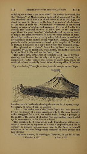 Keywords: The Quarterly journal of the Geological Society of London (12981198763).jpg 512 <br> PROCEEDINGS OF THE GEOLOGICAL SOCIETY <br> Feb 2 <br> called by the natives ' the burnt field Its surface is covered like <br> the Malpais of Mexico with a thick bed of ashes and from this <br> rise numerous small knolls or hillocks some 10 or 12 feet high and <br> about the same in diameter at the base from each of which issued <br> at the time of their visit ' fumaroles or streams of hot vapour <br> having an odour of sulphuretted hydrogen Here as at JoruUo it is <br> evident that abundant showers of ashes gave to the superficial <br> asperities of the great lava-bed which discharged vapours as usual <br> so long as the interior retained its heat the same conical or dome- <br> shaped figures that we see given by a deep fall of snow to accidental <br> protuberances on the surface of any rough field Indeed I observed a <br> precisely similar phenomenon produced by the eruption of Vesuvius <br> of 1822 as I remarked in a paper read before this Society in 1827 <br> The upheaval or blister theory having been however thus <br> originated by M de Humboldt was adopted and further developed <br> by M de Buch in his work on the Canary Isles <br> This author says of the Peak of Teneriife itself fig 4 notwith- <br> standing that he describes its only visible part the surface to be <br> composed of ejected pumice and streams of glassy lava which are <br> admitted to have repeatedly flowed down the steep sides of the cone <br> Fig 4 PeaJc of Teneriffe as seen from the margin of the Cirque <br> oei'iii <br> from its summit thereby showing the cone to be of a purely erup- <br> tive origin so far as it can be observed <br> It e the entire cone of the Pic de Teyde has been produced <br> by the ' upheaval ' of a mass urged upwards by the force beneath <br> which struggled for a vent and which while forcing a passage in <br> the middle of the crater of elevation the surrounding cirque lifted <br> up the mass above it in the form of a domef <br> This assertion be it remarked is made dogmatically without any <br> attempt to support by argument so strange a proposition and one so <br> contrary to received notions nay even to the facts he himself <br> relates as to the cone being visibly composed of loose pumice and <br> lava-streams <br> In the same manner in speaking of Yesuvius in the latter part <br> Canaries p 196 f Ibid p 202 36162079 111474 51125 Page 512 Text v 15 http //www biodiversitylibrary org/page/36162079 1859 Geological Society of London NameFound Vesuvius Biodiversity Heritage Library The Quarterly journal of the Geological Society of London v 15 1859 Geology Periodicals Smithsonian Libraries bhl page 36162079 dc identifier http //biodiversitylibrary org/page/36162079 smithsonian libraries Information field Flickr posted date ISOdate 2014-03-07 Check categories 2015 August 26 CC-BY-2 0 BioDivLibrary https //flickr com/photos/61021753 N02/12981198763 2015-08-26 14 57 00 cc-by-2 0 PD-old-70-1923 The Quarterly journal of the Geological Society of London 1859 Photos uploaded from Flickr by FĂŚ using a script |