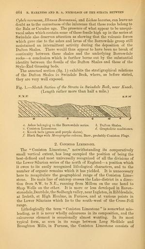 | Keywords: The Quarterly journal of the Geological Society of London (12736293903).jpg 464 R HARKNESS AND H A NICHOLSON ON THE STRATA BETWEEN <br> Ci/bele verrucosa fflomus Bowmanni and Lichas laxatus can leave no <br> doubt as to the correctness of the inference that these rocks belong to <br> the Bala or Caradoc age The presence of what appear to be unequi- <br> vocal ashes which contain some of these fossils high up in the series at <br> Swindale also deserves attention as showing that the volcanic forces <br> which gave rise to the ashes and lavas of the Borrowdale group still <br> maintained an intermittent activity during the deposition of the <br> Dufton Shales There would thus appear to have been no break of <br> continuity between these shales and the underlying Borrowdale <br> rocks ” a conclusion which is further borne out by the substantial <br> identity between the fossils of the Dufton Shales and those of the <br> Style-End Grassing beds <br> The annexed section fig 1 exhibits the stratigraphical relations <br> of the Dufton Shales in Swindale Beck where as before stated <br> they are very well exposed <br> Fis 1 - <br> -JT INTJE <br> -Sketch Section of the Strata in Swindale Beck near Knock <br> Length rather more than half a mile <br> s sw <br> a Ashes belonging to the Borrowdale series <br> c Coniston Limestone <br> e Knock beds green and purple slates <br> / Black flags with Monographs colon us Barr probably Coniston Flags <br> b Dufton Shales <br> d Graptolitic mudstones <br> 2 Coniston Limestone <br> The Coniston Limestone notwithstanding its comparatively <br> small vertical extent has long occupied the position of being the <br> best-defined and most universally recognized of all the divisions of <br> the Lower Silurian series of the north of England ” a position which <br> it owes to its easily recognized lithological characters and to the <br> number of organic remains which it has yielded It is unnecessary <br> here to recapitulate the geographical range of the Coniston Lime- <br> stone Its main line of outcrop crosses the Lake-district in a direc- <br> tion from S W to X E running from Millom on the one hand to <br> Snap Wells on the other It is more or less developed in Raven- <br> stonedale Dentdale the Sedbergh valley near Ingleton in Ribblesdale <br> at Ireleth at High Haulme in Furness and at various points in <br> the Lower Silurians which lie to the south-west of the Cross-Fell <br> range <br> Lithologieally the term Coniston Limestone is somewhat mis- <br> leading as it is never wholly calcareous in its composition and the <br> calcareous element is occasionally almost wanting In its most <br> typical form as seen in its range between Long Sleddale and <br> Broughton Mills in Furness the Coniston Limestone consists of 35818615 110705 51125 Page 464 Text 33 http //www biodiversitylibrary org/page/35818615 1877 Geological Society of London NameFound Lichas laxatus NameConfirmed Lichas laxatus NameFound Shales Biodiversity Heritage Library The Quarterly journal of the Geological Society of London v 33 1877 Geology Periodicals Smithsonian Libraries bhl page 35818615 dc identifier http //biodiversitylibrary org/page/35818615 smithsonian libraries Information field Flickr posted date ISOdate 2014-02-24 Check categories 2015 August 26 CC-BY-2 0 BioDivLibrary https //flickr com/photos/61021753 N02/12736293903 2015-08-26 19 59 19 cc-by-2 0 PD-old-70-1923 The Quarterly journal of the Geological Society of London 1877 Photos uploaded from Flickr by Fæ using a script |