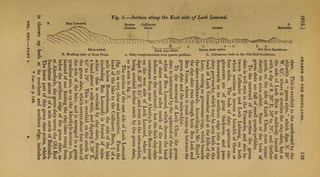| Keywords: The Quarterly journal of the Geological Society of London (12684138465).jpg 1852 <br> SHARPE ON THE HIGHLANDS <br> 129 <br> ¢ PS -c <br> is thrown up both <br> VOL YIII PART <br> slate This is overlaid to the northward by the <br> chloritic or green slate which dips N 20° <br> W 65° where it overlies the clay-slate but at <br> the side of Loch Dow is suddenly turned up <br> with a dip of S 20° E 50° to 70° and farther <br> north on the side of Loch Chon rests imme- <br> diately on mica -schist Some of the beds of <br> green slate are full of small quartz-pebbles <br> To the eastward of this section the green <br> slate is well seen in the Trossachs and also be- <br> tween Callander and Loch Lubnaig on both <br> which sections it covers a breadth of three or <br> four miles The beds of slaty quartzose con- <br> glomerate are of great thickness and pass <br> downwards on its southern edge into a coarse <br> slaty greywacke which may be seen both at the <br> head of Loch Vennachar and at the falls of the <br> Leny resting on greenstone-trap which bounds <br> the slates southwards According to Mr Nicol <br> the clay-slate runs through both Ben Ledi and <br> Ben Venue where it must come up between the <br> green slate and the mica-schist <br> To the westward of Loch Chon the green <br> slate is interrupted by the upheaval of the mica- <br> schist of Ben Lomond which throws the band <br> of slates several miles south of the course it <br> follows to the eastward ; but the dark clay-slate <br> continues from near Aberfoyle to the Ross point <br> on the west side of Loch Lomond where it <br> dips S 20° E 65° and rests on the mica-schist <br> being overlaid farther south by the green slate <br> as is seen in fig 3 <br> The section of the east side of Loch Lomond <br> fig 3 is very clear and instructive From the <br> head of the lake to the Cullimore Burn f of a <br> mile below Rowardennan the side of the lake <br> including Ben Lomond is formed of mica- <br> schist this is overlaid by clay-slate forming <br> a band about a mile wide and dipping S 20° E <br> 65° to 70° This is overlaid on the south by <br> the green slate which covers about four miles of <br> the side of the lake and is arranged in a great <br> synclinal axis as on the Aberfoyle section ; but <br> instead of our finding the clay-slate rising from <br> below the southern edge of the green slate as <br> at Aberfoyle the green slate meets the Old Red <br> Sandstone about f of a mile north of Balmaha <br> The lower part of this green slate series which <br> at its northern and southern edge includes <br> Loc cit p 149 <br> I K 35461131 109911 51125 Page 129 Text v 8 http //www biodiversitylibrary org/page/35461131 1852 Geological Society of London Biodiversity Heritage Library The Quarterly journal of the Geological Society of London v 8 1852 Geology Periodicals Smithsonian Libraries bhl page 35461131 dc identifier http //biodiversitylibrary org/page/35461131 smithsonian libraries Information field Flickr posted date ISOdate 2014-02-21 Check categories 2015 August 26 CC-BY-2 0 BioDivLibrary https //flickr com/photos/61021753 N02/12684138465 2015-08-27 11 54 30 cc-by-2 0 PD-old-70-1923 The Quarterly journal of the Geological Society of London 1852 Photos uploaded from Flickr by Fæ using a script |