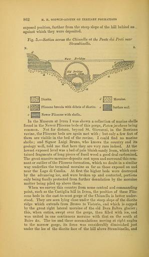 Keywords: The Quarterly journal of the Geological Society of London (13889324750).jpg 862 <br> H H GODWi S -ADSTEN ON TEETIAET POEilATIONS <br> exposed position further from the steep slope of the hill behind an <br> agaiust which they were deposited <br> Fig 5 ” Section across the Chiusella at the Fonte del Preti near <br> fStrambinello <br> ' 7 Diorite d Jv V' <br> Pliocene breccia with debris of diorite e <br> B <br> Moraine <br> Surface soil <br> c h iiTT izj Newer Pliocene with shells <br> In the Museum at Ivrea I was shown a collection of marine shells <br> found in the IS'ewer Pliocene beds of this gorge Ptctcn jacohaus being <br> common jS ot far distant beyond St Giovanni in the Eorriana <br> ravine the Pliocene beds are again met with ; but only a few feet of <br> them are visible in the bed of the ravine I could find no marine <br> shells ; and Signor Luigi Bruno who knows the country and its <br> geology well told me that here they are very rare indeed At the <br> lowest exposed level was abed of pale bluish sandy loam which con- <br> tained fragments of long pieces of fossil wood a good deal carbonized <br> The great massive moraine-deposits rest upon and surround this rem- <br> nant or outlier of the Pliocene formation which no doubt in a similar <br> way underlies the terminal moraine as far as those exposed on and <br> near the Lago di Candia At first the higher beds were destroyed <br> by the advancing ice and were broken up and contorted portions <br> only being finally protected from farther denudation by the moraine <br> matter being piled up abovo them <br> When we survey this country from some central and commanding <br> point such as the Castiglia hill in Ivrea the position of these Plio- <br> cene beds in the east- to-west gorge of the Chiusella is better under- <br> stood They are seen lying close under the steep slope of the diorite <br> ridge which extends from Erosso to Yistorio and which is capped <br> by the great right lateral moraine of the old Dora Baltea glacier ; <br> this when entire swept over the gorge then filled with ice and <br> was united in one continuous moraine with that on the south at <br> Bairo c The ice and these accumulations moving at right angles <br> to the narrow gorge its force was considerably diminished just <br> under the lee of the diorite face of the hill above Strambinello and 36941739 113697 51125 Page 862 Text 40 http //www biodiversitylibrary org/page/36941739 1884 Geological Society of London NameFound Lago di NameFound Ptctcn jacohaus Biodiversity Heritage Library The Quarterly journal of the Geological Society of London v 40 1884 Geology Periodicals Smithsonian Libraries bhl page 36941739 dc identifier http //biodiversitylibrary org/page/36941739 smithsonian libraries Information field Flickr posted date ISOdate 2014-04-30 Check categories 2015 August 26 CC-BY-2 0 BioDivLibrary https //flickr com/photos/61021753 N02/13889324750 2015-08-26 04 54 11 cc-by-2 0 PD-old-70-1923 The Quarterly journal of the Geological Society of London 1884 Photos uploaded from Flickr by Fæ using a script |