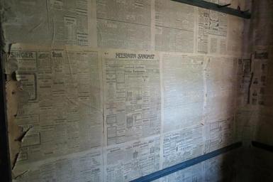 | Keywords: newspaper wallpaper sanomat improvised decorating improviseddecorating Several of the rooms in some of the buildings had authentic wallpaper on the walls. This one is from a 1913 Helsingin Sanomat. Laura told me that this is how her Grandmother learned to read. Several of the rooms in some of the buildings had authentic wallpaper on the walls. This one is from a 1913 Helsingin Sanomat. Laura told me that this is how her Grandmother learned to read. | ||||