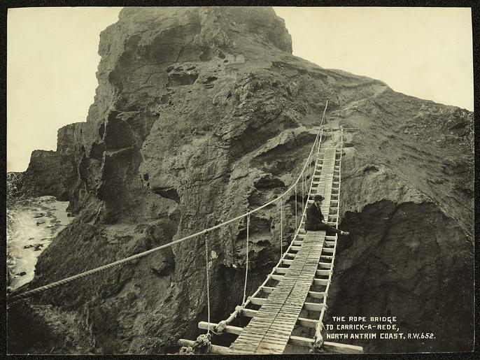 | Keywords: carrick-a-rede carrickarede rope bridge ropebridge proni welch ireland irish 'country life' countrylife genealogy ancestry ulster belfast 'northern ireland' northernireland photo border outdoor monochrome Creator: R. Welch (Photographer) Date: c.1914 Original Format: Photographic Print Description: The Rope Bridge, Carrick-a-rede, County Antrim Coast. PRONI Ref: D1403_2~067~A Copying and copyright: Please see www.proni.gov.uk/index/research_and_records_held/copying_... For Copy Orders, contact: Email: proni@dcalni.gov.uk For fees and charges see: www.proni.gov.uk/index/about_proni/are_there_any_fees_and... Creator: R. Welch (Photographer) Date: c.1914 Original Format: Photographic Print Description: The Rope Bridge, Carrick-a-rede, County Antrim Coast. PRONI Ref: D1403_2~067~A Copying and copyright: Please see www.proni.gov.uk/index/research_and_records_held/copying_... For Copy Orders, contact: Email: proni@dcalni.gov.uk For fees and charges see: www.proni.gov.uk/index/about_proni/are_there_any_fees_and... |