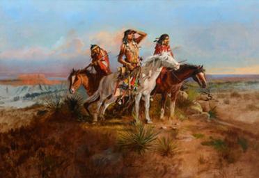 Keywords: 'The Scouting Party' by Charles Marion Russell, oil on canvas, 24 × 36 inches.jpg title The Scouting Party ArtDaily com creator Charles Marion Russell oil canvas in 24 36 object history exhibition history credit line accession number Unclear-PD-US-old-70 Paintings of Native Americans by Charles Marion Russell Paintings of men on horseback |