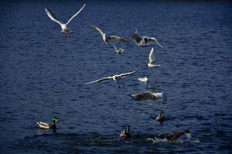 Keywords: the seagulls ducks birds flight nature wings animals pen water lake wild birds