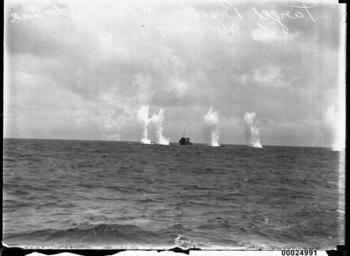 | Keywords: samuel j hood collection samueljhoodcollection hmas torrens hmastorrens torrens royal australian navy royalaustraliannavy navy naval vessel navalvessel sinking scuttled scuttling 1930 destroyer sydney sydney heads sydneyheads hmas anzac hmasanzac artillery guns blackandwhite monochrome outdoor photo border black and white Having served in the Royal Australian Navy from 1916, latterly as a training platform for the Naval Reserve, HMAS TORRENS I was decommissioned and prepared as a target for Fleet Gunnery Practice. On 24 November 1930 Samuel J Hood, who was probably on board HMAS ANZAC, photographed the sinking of TORRENS off Sydney Heads. Here the torpedo boat destroyer is under heavy attack, probably from the 8-inch guns of the heavy cruiser HMAS CANBERRA. This photo is part of the Australian National Maritime Museum’s Samuel J. Hood Studio collection. Sam Hood (1872-1953) was a Sydney photographer with a passion for ships. His 60-year career spanned the romantic age of sail and two world wars. The photos in the collection were taken mainly in Sydney and Newcastle during the first half of the 20th century. The ANMM undertakes research and accepts public comments that enhance the information we hold about images in our collection. This record has been updated accordingly. Photographer: Samuel J. Hood Studio Collection Object no. 00024991 Having served in the Royal Australian Navy from 1916, latterly as a training platform for the Naval Reserve, HMAS TORRENS I was decommissioned and prepared as a target for Fleet Gunnery Practice. On 24 November 1930 Samuel J Hood, who was probably on board HMAS ANZAC, photographed the sinking of TORRENS off Sydney Heads. Here the torpedo boat destroyer is under heavy attack, probably from the 8-inch guns of the heavy cruiser HMAS CANBERRA. This photo is part of the Australian National Maritime Museum’s Samuel J. Hood Studio collection. Sam Hood (1872-1953) was a Sydney photographer with a passion for ships. His 60-year career spanned the romantic age of sail and two world wars. The photos in the collection were taken mainly in Sydney and Newcastle during the first half of the 20th century. The ANMM undertakes research and accepts public comments that enhance the information we hold about images in our collection. This record has been updated accordingly. Photographer: Samuel J. Hood Studio Collection Object no. 00024991 |