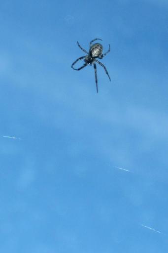Keywords: bug spider blue sky outdoor Spider decorating the office window. Spider decorating the office window.