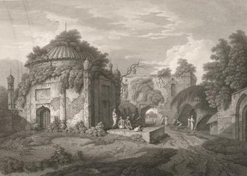 | Keywords: The Small Kuttra with its enclosed Mosque, Dhaka (1817).jpg en This etching is derived from plate 9 of Charles D'Oyly's 'Antiquities of Dacca' A quarter of a mile to the east of the Bara Katra in Dhaka is the Chota Katra essentiallty a smaller version similar in layout which was built in 1663 by the Mughal governor of Bengal and uncle of Aurangzeb Shaista Khan Historian James Atkinson wrote that D'Oyly's view of the caravanserai is taken from within the area of the square which its walls enclose a small Mosque on the left Its minarets rise somewhat like the shafts of elegant octangular columns and are terminated by capitals of oriental foliage and fruit and while the dome of this mosque is beautifully fluted its uniformities of colour and form are varigated in a picturesque manner by the blue and orange mosses and other luxurious vegetation of this part of Asia 1817 The British Library D'Oyly Sir Charles 1781-1845 PD-Art PD-old-100 1845 Bangladesh Uploaded with UploadWizard Old vintage photographs of Bangladesh Historical images of Dhaka Sir Charles D'Oyly 7th Baronet Dhaka in the 19th century Choto Katra |
