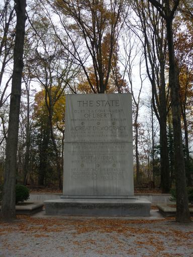 Keywords: The State stone tablet.JPG en One of four tablets which stand on both sides of the Theodore Roosevelt Sculpture on Theodore Roosevelt Island This tablet bears quotes on the subject of the State Ours is a government of liberty by through and under law A great democracy has got to be progressive or it will soon cease to be great or a democracy Order without liberty and liberty without order are equally destructive In popular government results worth having can be achieved only by men who combine worthy ideals with practical good sense If I must choose between righteousness and peace I choose righteousness 2013-11-21 14 17 24 own Discol Uploaded with UploadWizard Theodore Roosevelt Island National Memorial |