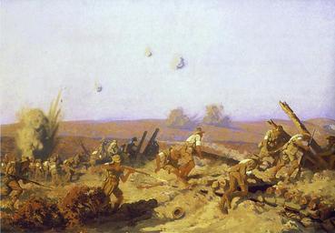 | Keywords: The taking of Lone Pine (Fred Leist).jpg Detail from The taking of Lone Pine 1921 oil-on-canvas 122 5 cm x 245 5 cm by Fred Leist 1878 1945 Depicts the attack by the Australian 1st Brigade on covered Turkish trenches at Lone Pine 6 August 1915 during the Battle of Gallipoli ART02931 PD-AustraliaGov Paintings of the Battle of Gallipoli 1921 World War I trench warfare Battle of Lone Pine Fred Leist Paintings of World War I in the Australian War Memorial | ||||