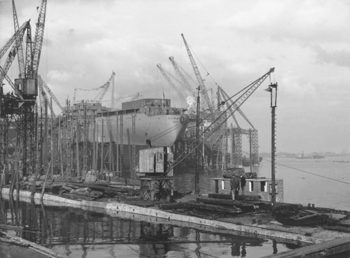 | Keywords: sunderland shipbuilding river wear riverwear j.l. thompson & sons ltd jlthompsonsonsltd north sands sunderland northsandssunderland shipyard cranes wearside spinanger tanker industry industrial black and white photograph blackandwhitephotograph north sands northsands maritime abstract launch 22 october 22october 1957 tugboats vessel boat ship industrial action industrialaction wear tugboatmen weartugboatmen 1846 robert thompson & sons robertthompsonsons iron metal crane construction platform timber river bank porthole rail cabin deck cargo doorway glass land mast water flags rope reflection wire unusual interesting workmen crew steam smoke pole peg bolt plate plank log daylight standing observing working attentive hook cog opening coat trousers hat man slope grain blackandwhite monochrome outdoor black and white View of the tanker ‘Spinanger’ ready for launch at the North Sands shipyard of J.L. Thompson & Sons, Sunderland, 22 October 1957 (TWAM ref. DS.JLT/4/PH/1/694/2/2). The launch of 'Spinanger' was unusual in that it was carried out without the assistance of tugboats. This was due to industrial action by the Wear tugboatmen. This set celebrates the achievements of the famous Sunderland shipbuilding firm Joseph L. Thompson & Sons. The company’s origins date back to 1846 when the firm was known as Robert Thompson & Sons. Robert Thompson senior died in 1860, leaving his second son Joseph Lowes Thompson in control. In 1870 the shipyard completed its last wooden vessel and was then adapted for iron shipbuilding. By 1880 the firm had expanded its operations over much of North Sands and in 1884 completed the construction of Manor Quay, which served as fitting out and repair facilities. For many years in the late nineteenth century the yard was the most productive in Sunderland and in 1894 had the fourth largest output of any shipyard in the world. The Depression affected the firm severely in the early 1930s and no vessels were launched from 1931 to 1934. However, during those years the company developed a hull design giving greater efficiency and economy in service. During the Second World War the prototype developed by Joseph L. Thompson & Sons proved so popular that it was used by the US Government as the basis of over 2,700 Liberty ships built at American shipyards between 1942 and 1945. After the War the North Sands shipyard went on to build many fine cargo ships, oil tankers and bulk carriers. Sadly the shipyard closed in 1979, although it briefly reopened in 1986 to construct the crane barge ITM Challenger. (Copyright) We're happy for you to share these digital images within the spirit of The Commons. Please cite 'Tyne & Wear Archives & Museums' when reusing. Certain restrictions on high quality reproductions and commercial use of the original physical version apply though; if you're unsure please email archives@twmuseums.org.uk View of the tanker ‘Spinanger’ ready for launch at the North Sands shipyard of J.L. Thompson & Sons, Sunderland, 22 October 1957 (TWAM ref. DS.JLT/4/PH/1/694/2/2). The launch of 'Spinanger' was unusual in that it was carried out without the assistance of tugboats. This was due to industrial action by the Wear tugboatmen. This set celebrates the achievements of the famous Sunderland shipbuilding firm Joseph L. Thompson & Sons. The company’s origins date back to 1846 when the firm was known as Robert Thompson & Sons. Robert Thompson senior died in 1860, leaving his second son Joseph Lowes Thompson in control. In 1870 the shipyard completed its last wooden vessel and was then adapted for iron shipbuilding. By 1880 the firm had expanded its operations over much of North Sands and in 1884 completed the construction of Manor Quay, which served as fitting out and repair facilities. For many years in the late nineteenth century the yard was the most productive in Sunderland and in 1894 had the fourth largest output of any shipyard in the world. The Depression affected the firm severely in the early 1930s and no vessels were launched from 1931 to 1934. However, during those years the company developed a hull design giving greater efficiency and economy in service. During the Second World War the prototype developed by Joseph L. Thompson & Sons proved so popular that it was used by the US Government as the basis of over 2,700 Liberty ships built at American shipyards between 1942 and 1945. After the War the North Sands shipyard went on to build many fine cargo ships, oil tankers and bulk carriers. Sadly the shipyard closed in 1979, although it briefly reopened in 1986 to construct the crane barge ITM Challenger. (Copyright) We're happy for you to share these digital images within the spirit of The Commons. Please cite 'Tyne & Wear Archives & Museums' when reusing. Certain restrictions on high quality reproductions and commercial use of the original physical version apply though; if you're unsure please email archives@twmuseums.org.uk |