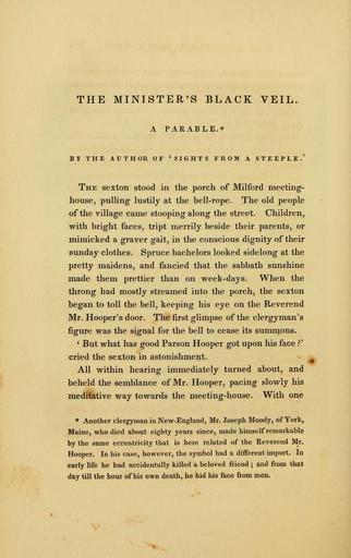 Keywords: The Token, 1836 - Minister's Black Veil.jpg en Page from The Token and Atlantic Souvenir an annual gift-book edited by Samuel Griswold Goodrich Published by Charles Bowen 1836 Features the opening page of The Minister's Black Veil a short story by Nathaniel Hawthorne 1836 https //archive org/details/tokenatlanticsou00good Archive org Nathaniel Hawthorne other versions PD-old-70-1923 Writings of Hawthorne Samuel Griswold Goodrich The token and Atlantic souvenir - A Christmas and New Year's present 1836 |