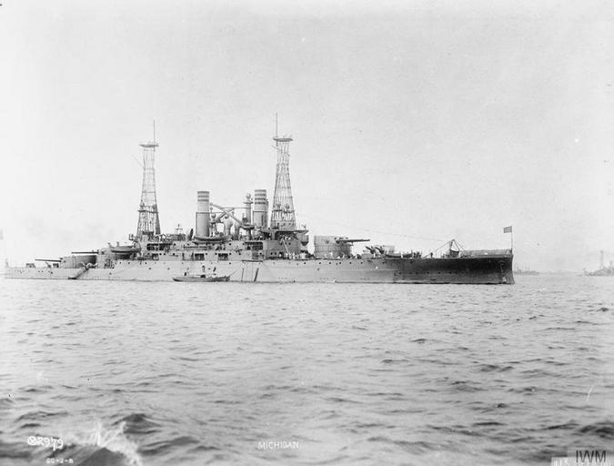Keywords: The US Navy in the First World War Q68325.jpg The US Navy in the First World War<br/> American battleship USS Michigan American official photographer First World War http //media iwm org uk/iwm/mediaLib//359/media-359623/large jpg Q 68325 205086093 This image was created and released by the Imperial War Museum on the http //www iwm org uk/corporate/privacy-copyright/licence IWM Non Commercial Licence This photograph was taken by American military personnel in their official duties and is public domain under US law consequently the following licence applies in addition to any other claim PD-USGov-Mil American First World War Official Exchange Collection Associated people and organisations US Navy Associated themes US Navy 1917-1918 Associated keywords Naval Warfare photographs PD-USGov American First World War Official Exchange collection Images uploaded by Fæ