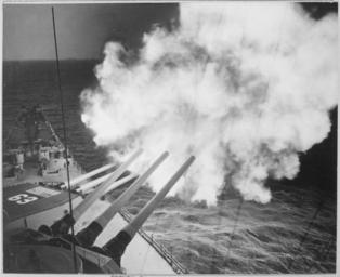 | Keywords: The USS Missouri fires 16-inch shell into enemy lines at Hungnam. A 16-inch 3-gun salvo is on its way to commies. - NARA - 520788.tif Scope and content General notes Use War and Conflict Number 1445 when ordering a reproduction or requesting information about this image 520788 Local identifier 80-G-426954 Department of Defense Department of the Navy Naval Photographic Center 09/18/1947 - Still Picture Records Section Special Media Archives Services Division NWCS-S National Archives at College Park 8601 Adelphi Road College Park MD 20740-6001 date 1950 12 26 Record group Record Group 80 General Records of the Department of the Navy 1804 - 1983 Record group ARC 409 General Photographic File of the Department of Navy compiled 1943 - 1958 documenting the period 1900 - 1958 Series ARC 520587 File unit File unit ARC Variant control numbers NAIL Control Number NWDNS-80-G-426954 yes Other versions NARA-cooperation PD-USGov Weapons and weapons' stations on the USS Missouri BB-63 1944-1955 Black and white photographs Firing naval artillery 16 /50 caliber Mark 7 gun Naval shore bombardment in the Korean War |
