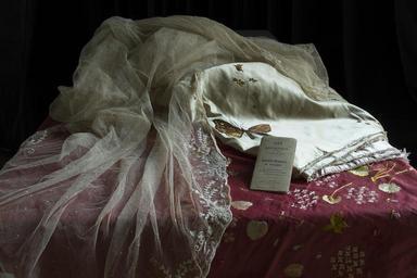 | Keywords: salt araştırma saltaraştırma salt research saltresearch salt online saltonline düğün çeyiz lavanta hatice gonnet bağana haticegonnetbağana duvak gelin bohçası gelinbohçası yatak örtüsü yatakörtüsü koku ve bellek kokuvebellek said bey saidbey arşivi parçalamak arşiviparçalamak dismantling the archive dismantlingthearchive semiramis kocainan semiramiskocainan black background Levander is an important issue of the dowry of Said Bey's daughter Semiramis, who got married in 1908. Levander is a part of the family memories of Semiramis' granddaughter Hatice Gonnet Bağana. The scent of lavender in Open Archive space, where "Dismantling the Archive" takes place, brings back the family memories. Photo: The veil of Semiramis, bridal package and bed cover SALT Research, Said Bey Archive Said Bey’in 1908’de evlenen kızı Semiramis’in çeyizinde lavanta önemli bir yer tutar. Lavanta, Semiramis’in torunu Hatice Gonnet Bağana’nın aile hatıralarının da bir parçasıdır. “Arşivi Parçalamak”ın yer aldığı Açık Arşiv mekânındaki lavanta kokusu aile hafızasını yeniden canlandırır. Fotoğraf: Semiramis’in duvağı, gelin bohçası ve yatak örtüsü SALT Araştırma, Said Bey Arşivi Levander is an important issue of the dowry of Said Bey's daughter Semiramis, who got married in 1908. Levander is a part of the family memories of Semiramis' granddaughter Hatice Gonnet Bağana. The scent of lavender in Open Archive space, where "Dismantling the Archive" takes place, brings back the family memories. Photo: The veil of Semiramis, bridal package and bed cover SALT Research, Said Bey Archive Said Bey’in 1908’de evlenen kızı Semiramis’in çeyizinde lavanta önemli bir yer tutar. Lavanta, Semiramis’in torunu Hatice Gonnet Bağana’nın aile hatıralarının da bir parçasıdır. “Arşivi Parçalamak”ın yer aldığı Açık Arşiv mekânındaki lavanta kokusu aile hafızasını yeniden canlandırır. Fotoğraf: Semiramis’in duvağı, gelin bohçası ve yatak örtüsü SALT Araştırma, Said Bey Arşivi |