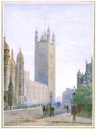 | Keywords: The Victoria Tower of the Houses of Parliament Seen from Parliament Square by John Crowther.jpg The Victoria Tower of the Houses of Parliament seen from Parliament Square 1893 Watercolour cm 37 4 27 2 1 Parliamentary Estate London The range of buildings forming the west front façade of the House of Lords seen from Parliament Square The centre of the composition is dominated by Victoria Tower and to the left flanked by two octagonal towers is St Stephen's Entrance The corner of King Henry VII's Chapel can be seen on the opposing side of the watercolour while in the distance a row of 18th-century town houses pale into insignificance Accession number WOA 3632 UK Parliament http //www parliament uk/about/art-in-parliament/ Art in Parliament website; http //www parliament uk/worksofart/artwork/john-crowther/the-victoria-tower-of-the-houses-of-parliament-seen-from-parliament-square---1893/3632 Artwork information page; http //www parliament uk/about/art-in-parliament/global/print/ art 3632 Image page; http //assets3 parliament uk/woa/woa-portrait-large/woa-large/3632-1-h tif Image file PD-old-100 Palace of Westminster in art |