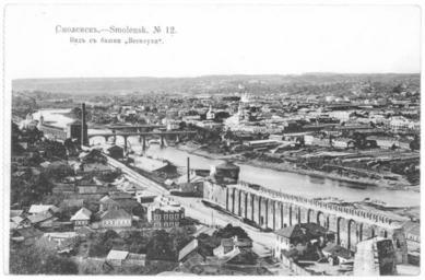 | Keywords: The view from the tower Veseluha 4.jpg en The view from the tower area to Veseluha current street Sobolev fortification in the Dnieper River in present-day Zadneprovsky district of Smolensk ru Вид с башни Веселуха на айон нынешней улицы Соболева к епостной стены у Днеп а те ито ии сов еменного Заднеп овского айона Смоленска О игинальная отк ытка е установлены До 1917 года PD-RusEmpire 20th-century postcards Postcards of Smolensk | ||||