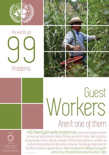 | Keywords: 99problems #iccprat50 iccprat50 #foaaat50 foaaat50 labor rights laborrights labor guest workers guestworkers migrant workers migrantworkers unga unga71 outdoor #56 in our series of #99problems posters, to mark the 50th anniversary of the international rights to freedom of peaceful assembly and of association. 99 reminders that human rights are not the problem. For more on how workers' rights freedom of peaceful assembly and of association rights are being rolled back worldwide, read the Special Rapporteur's 2016 report to the UN General Assembly (A/71/385): freeassembly.net/reports/workers-rights/ #56 in our series of #99problems posters, to mark the 50th anniversary of the international rights to freedom of peaceful assembly and of association. 99 reminders that human rights are not the problem. For more on how workers' rights freedom of peaceful assembly and of association rights are being rolled back worldwide, read the Special Rapporteur's 2016 report to the UN General Assembly (A/71/385): freeassembly.net/reports/workers-rights/ |
