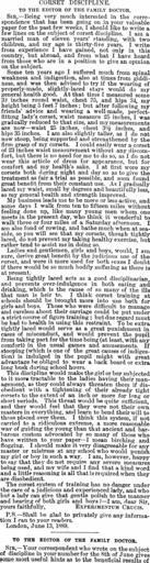 MAKE A MEME View Large Image TheFamilyDoctorJune29 1889page281.png CORSET DISCIPLINE TO THE EDITOR OF THE FAMILY DOCTOR SIR -Being very much interested in the corre­spondence that has been going on in your valuable paper for the past few weeks I should like to write a ...