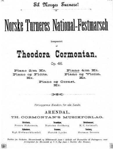| Keywords: Theodora Cormontan Publication.png en This file is from the book MUSIKKHANDEL I NORGE FRA BEGYNNELSEN TIL 1909 Music Publishing in Norway from the Beginning Until 1909 by Kari Michelsen The author scanned the image from from a document printed in 1879-1886 held in the archives of the Aust-Agder kulturhistoriske senter in Arendal Norway http //www hf uio no/imv/forskning/prosjekter/norgesmusikk/musikkhistarkiv/notetrykk/KariM_bok/KariM_hele pdf Chapter 10 p 217 Aust-Agder kulturhistoriske senter Arendal 1870 PD-old-70-1923 Theodora Cormontan Organists from Norway Sheet music publishers cc-by-sa-3 0 |