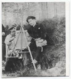 Keywords: smithsonian institution smithsonianinstitution easel painter theodore robinson theodorerobinson painting imporessionist landscape new york armory show 1913 newyorkarmoryshow1913 paint painters french mustache outdoor black and white blackandwhite artist art men archives of american art archivesofamericanart blackandwhite black and white Description: Robinson seated on a bank, with an unidentified artist, painting. Creator/Photographer: Unidentified photographer Medium: Black and white photographic print Dimensions: 20 cm x 18 cm Date: 1872 Collection: Macbeth Gallery Records, c. 1890-1964 Persistent URL: www.aaa.si.edu/collections/images/detail/theodore-robinso... Repository: Archives of American Art Accession number: aaa_macbgall_4830 Description: Robinson seated on a bank, with an unidentified artist, painting. Creator/Photographer: Unidentified photographer Medium: Black and white photographic print Dimensions: 20 cm x 18 cm Date: 1872 Collection: Macbeth Gallery Records, c. 1890-1964 Persistent URL: www.aaa.si.edu/collections/images/detail/theodore-robinso... Repository: Archives of American Art Accession number: aaa_macbgall_4830 |