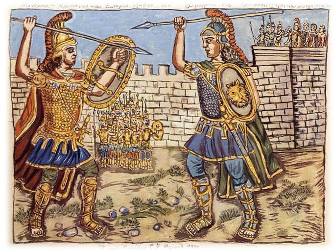 | Keywords: Theofilos monomaxia Achilleos.jpg  Artwork Creator Theofilos Hatzimichael  ονομαχία Αχιλλέως και Έκτορος έξωθεν του φρουρίου της Τρωάδας Ο Πάρης και η οικογένεια του Duel of Achilles and Hector outside the fortress of Troas Paris and his family http //n2 nabble com/-td3314988 html PD-old-auto 1934 Other versions Theofilos Hatzimichael Achilles Hector Duels in art |
