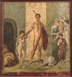 Keywords: Theseus liberator MANN 9043.jpg between 45 79 29 juillet 2015 for photograph Fresco Size cm 88 97 institution Naples National Archaeological Museum second floor room LXXIII place of discovery House of M Gavius Rufus object history exhibition history found in 1868 on display since 1870 credit line accession number 9043 place of creation Pompeii http //cir campania beniculturali it/museoarcheologiconazionale/itinerari-tematici/nel-museo/collezioni-pompeiane/RIT_RA91 searchterm 9043 PD-old-100 cc-zero Minotaur in ancient Roman paintings Casa di Gavius Rufus Pompeii Ancient Roman frescos - Fourth style Ancient Roman frescos in the Museo Archeologico Naples 9043 Paintings of standing men at full length Paintings of nude males from Italy Quality images by Jebulon Quality images of Naples Quality images of paintings QualityImage |