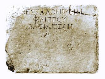 | Keywords: Thessaloniki Filippou.jpg  Inscribed base of a statue of Thessaloniki of the 2nd c B C found in the area of the ancient Agora and part of a group of statues of the family of Alexander the Great Inscription ΘΕΣΣΑΛΟ ΙΚΗ ΦΙΛΙΠΠΟΥ ΒΑΣΙΛΙΣΣΑ Ενε ίγραφο βάθρο αγάλματος της Θεσσαλονίκης Πρόκειται για τμήμα βάθρου με αγάλματα της οικογένειας του Φιλί  ου Β΄  ου είχαν στηθεί εκεί το 2ο αι μ Χ Ένα α ό αυτά σύμφωνα με την ε ιγραφή εικόνιζε τη Θεσσαλονίκη κόρη του Φιλί  ου και γυναίκα του Κασσάνδρου  ου έδωσε το όνομά της στην  όλη Ε ιγραφή ΘΕΣΣΑΛΟ ΙΚΗ ΦΙΛΙΠΠΟΥ ΒΑΣΙΛΙΣΣΑ Archaeological Museum of Thessaloniki 2nd Century B C author PD-Art Ancient Greek inscriptions in the Archaeological Museum Thessaloniki 2nd-century BC inscriptions in Greece 2nd-century BC art in Thessaloniki Philip II |