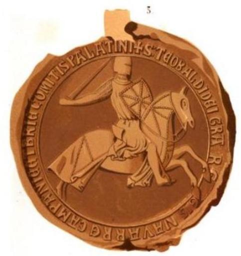 Keywords: Thibaut5a.jpg en Theobald II of Navarre fr Thibaut V de Champagne Essai sur les sceaux des comtes et comtesses de Champagne Creator Henri d'Arbois de Jubainville 1856 Medieval seals PD-old-100 Theobald II of Navarre