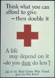 Keywords: "Think what you can afford to give- then double it. A life may depend on it- do you dare do less^ All of the Red... - NARA - 512653.jpg Scope and content General notes 512653 Local identifier 4-P-215 U S Food Administration Educational Division Advertising Section 01/15/1918 - 01/1919 Still Picture Records Section Special Media Archives Services Division NWCS-S National Archives at College Park 8601 Adelphi Road College Park MD 20740-6001 other date circa 1917 1919 Record group Record Group 4 Records of the U S Food Administration 1917 - 1920 Record group ARC 333 World War I Posters compiled 1917 - 1919 Series ARC 512439 File unit File unit ARC Variant control numbers NAIL Control Number NWDNS-4-P-215 Other versions <gallery> File Think_what_you_can_afford_to_give-_then_double_it _A_life_may_depend_on_it-_do_you_dare_do_less _All_of_the_Red _-_NARA_-_512653 tif tif File Think_what_you_can_afford_to_give-_then_double_it _A_life_may_depend_on_it-_do_you_dare_do_less _All_of_the_Red _-_NARA_-_512653 jpg jpg </gallery> NARA-cooperation PD-USGov World War I posters of the United States World War I homefront in the United States International Red Cross and Red Crescent Movement War relief |