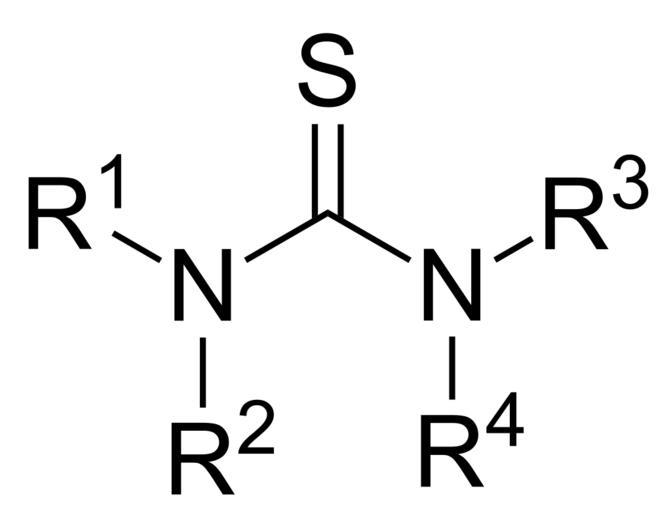 Keywords: Thiourea functional group.svg General chemical structure of the thiourea functional group Own 18 42 18 November 2010 UTC Edgar181 <span class signature-talk >talk</span> Thioureas Functional groups